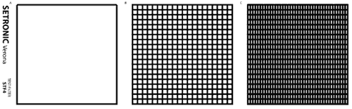 Der TESTFILTER STF4 besteht aus einem Polyethylen- Trägermaterial auf dem drei Bereiche mit unterschiedlichen Dämpfungseigenschaften definiert sind, sie werden mit A, B und C bezeichnet. Mit dem Filter können die Meßgrößen Rauch und Feuer simuliert sowie grob die korrekte Ausrichtung der SETRONIC- Melder überprüft werden.